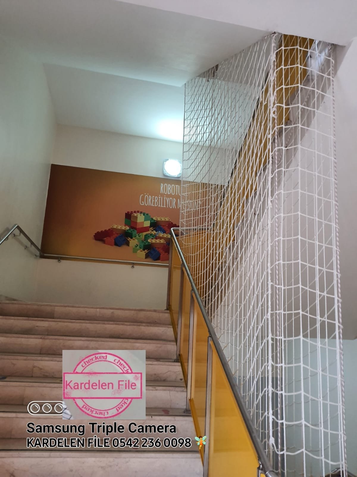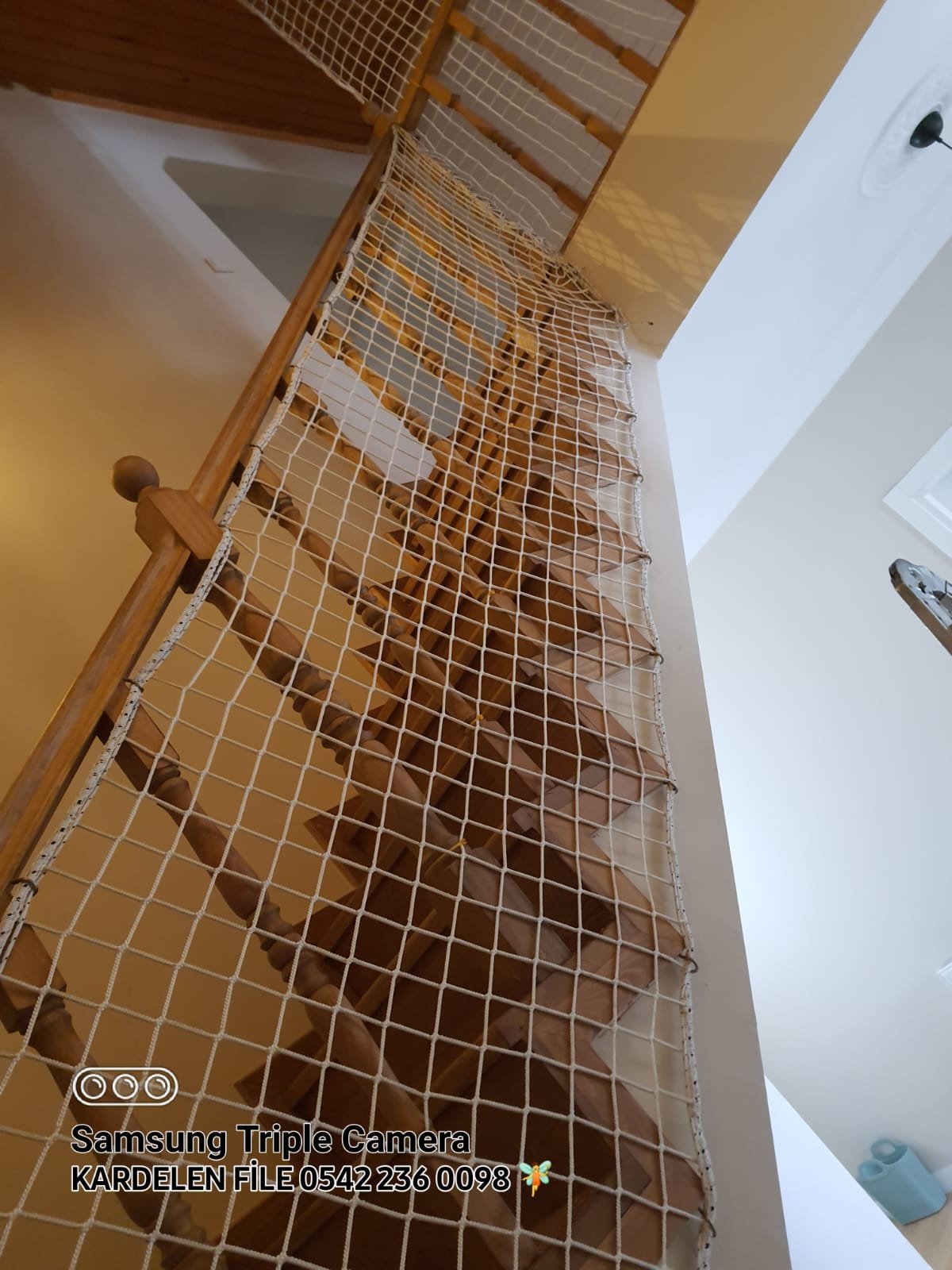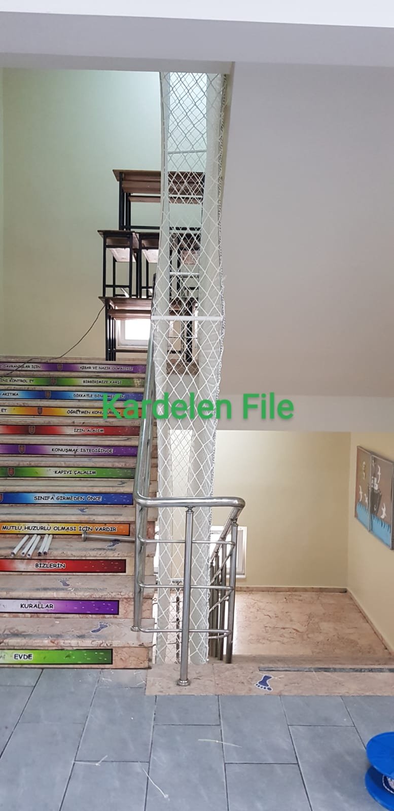 Merdiven Güvenlik Filesi merdiven boşlukları merdiven kenarları boşlukları için üretilen bir güvenlik filesi çeşididir.Yaşlı ve hastaların özelliklede çocukların bu boşluklardan düşüp arzu edilmeyen kazaların önlenmesi için uygulanan bir Güvenlik Filesi uygulamasıdır.